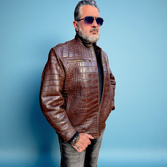 Brown Alligator Leather Bomber Jacket – Handmade Luxury Men’s Outerwear