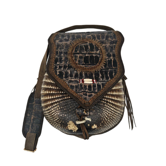 Bohemian Armadillo Shell Whipstitch Messenger Bag, Antler Bone Closure, Handmade Bohemian Bag Alligator Leather and Fringe Purse Charm