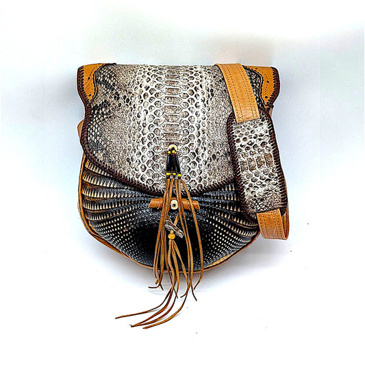 Bohemian Armadillo Shell Crossbody Bag| Snakeskin| Artisan Whipstitch Leather Bag| Antler Bone| Fringe| Southwestern Fashion