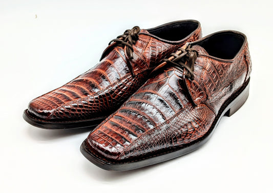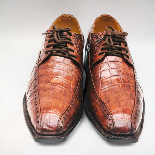 Men's Alligator Leather Oxford Cognac Brown Dress Shoes