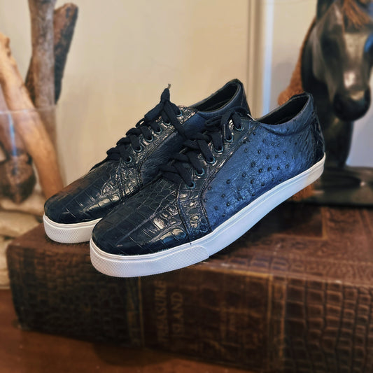 Midnight Fusion Alligator Ostrich Low Top Tennis Shoes