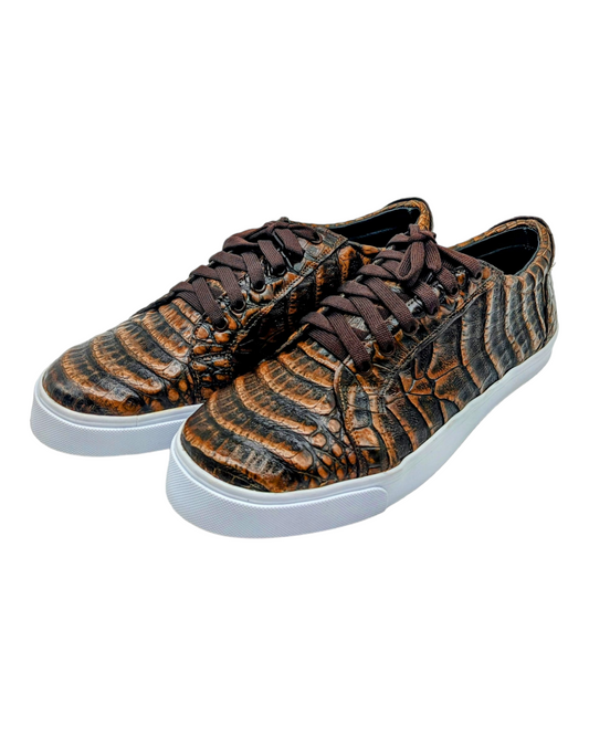 Men's Copper Alligator Luxury Leather Sneakers